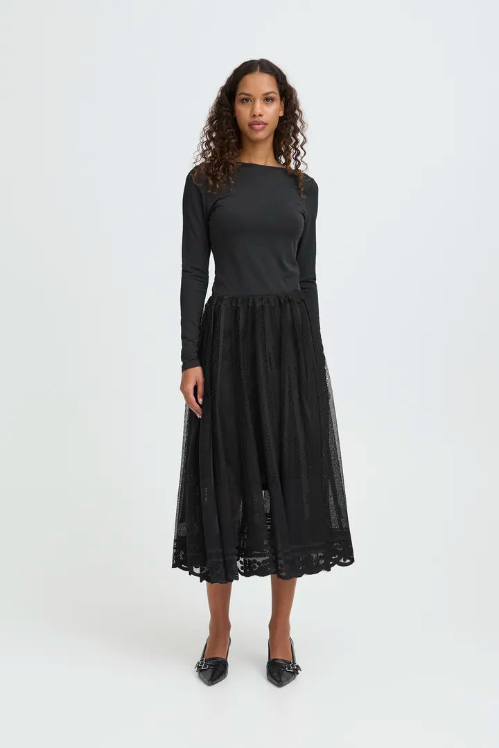 A full-length maxi skirt from ICHI. Worn in a pleated A-line, it's blended from viscose with a mid rise. Fastens with a zip.