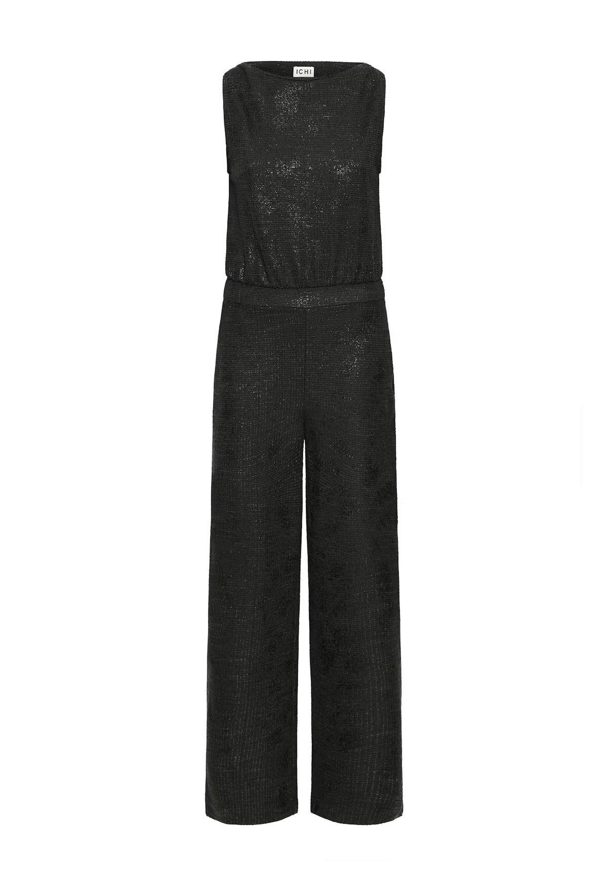 This sleeveless jumpsuit features a straight, wide-leg silhouette and a subtle shimmering texture. The round neckline and elasticated waist flatter the shape, creating a clean, sophisticated look suitable for confident style. Perfect jumpsuit for Party season.