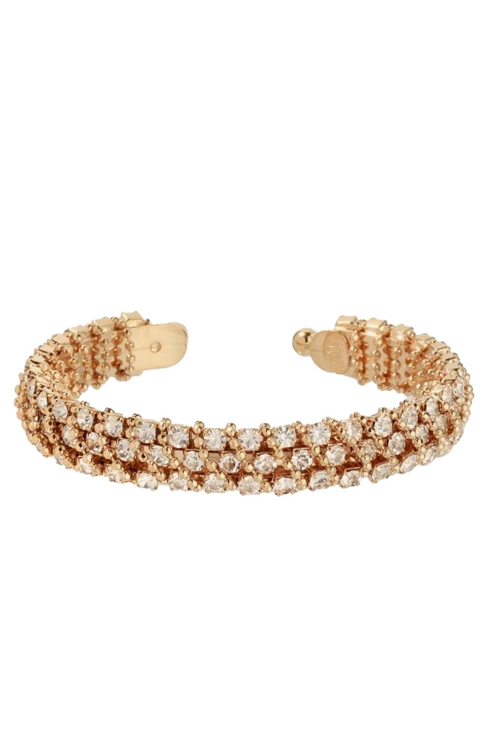 From the Izilda collection, this gold-plated bracelet sparkles with elegance. Paved with sparkling rhinestones meticulously set in claws, it is distinguished by a gold-plated chain that delicately wraps around its contour. A refined play on texture that combines craftsmanship and sophisticated sparkle.
