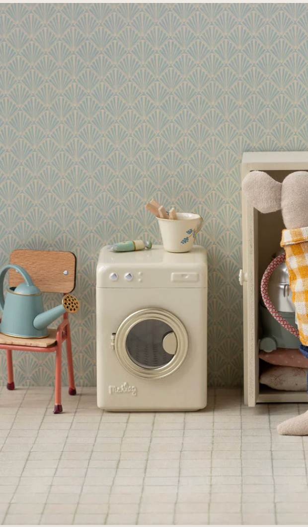 Every busy household needs a helping hand for the laundry - a washing machine is the right solution. It is made in metal and painted in off-white color, with many details that makes it indispensable in the play. Perfect in size for the mouse family.